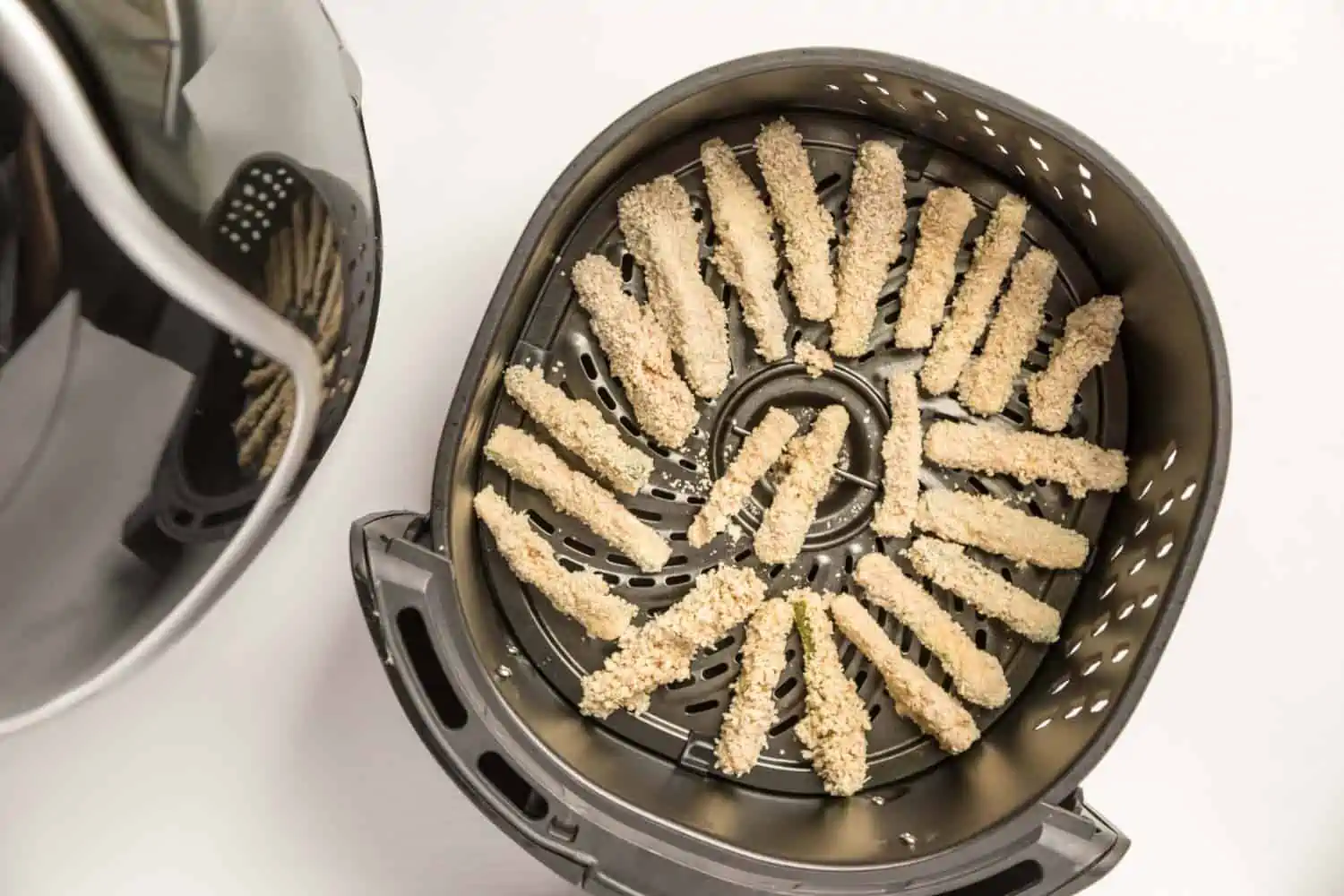 These zucchini sticks are not cooked in an air fryer, but deep fried. They’re also not vegan because the batter contains both eggs and milk. In this recipe, we’re not only cutting down on the fat content by air frying, but we swapped out the eggs for a flax egg and eliminated the milk. Though, you could use dairy-free milk, if desired.