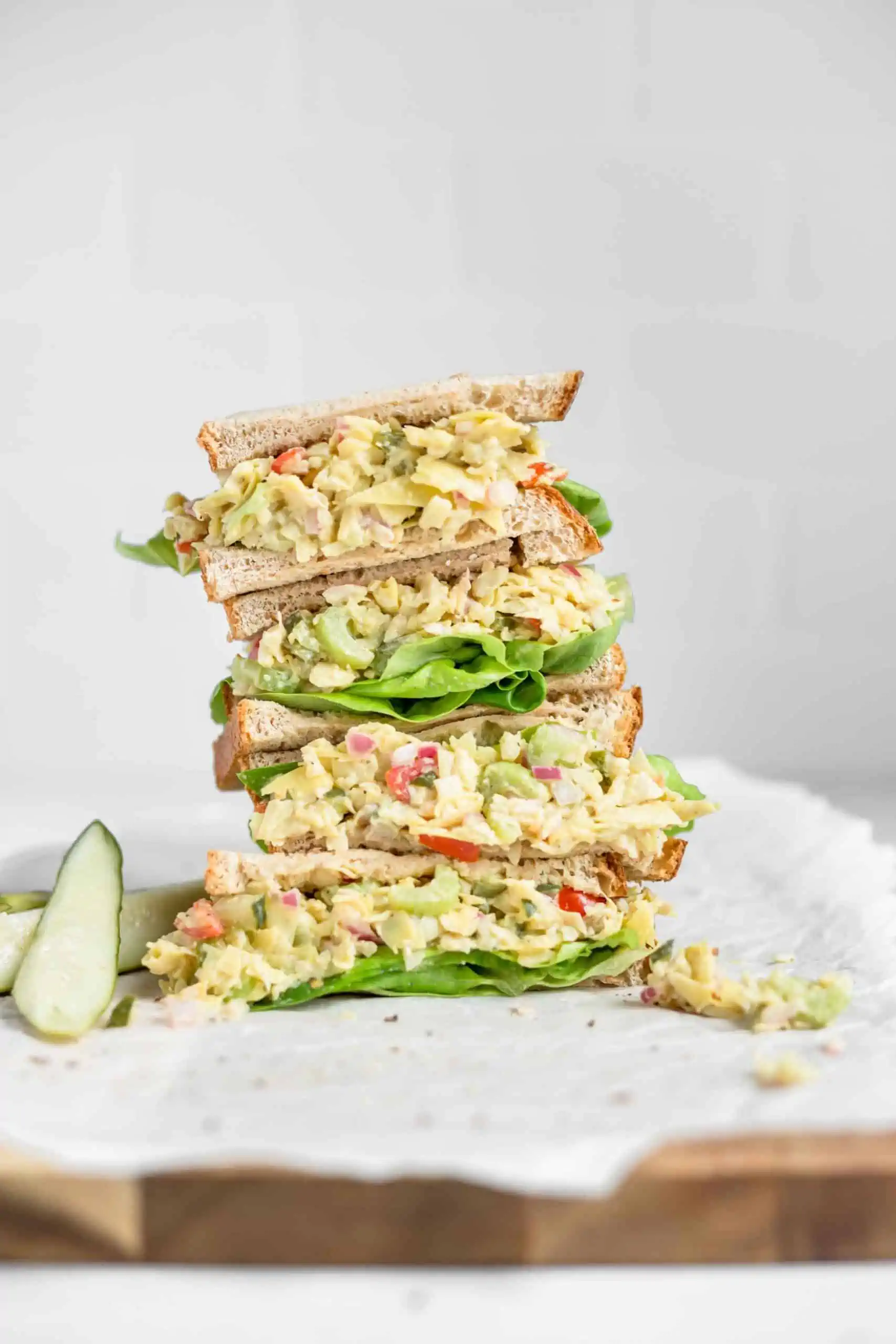 If you’re craving the nostalgic taste of creamy tuna salad layered in thick between two slices of soft bread, don’t go fish- Go plants! Canned artichoke makes a stunning substitution for that characteristic tuna fish mouthfeel that’s both meaty and tender, solid yet shredded, interspersed with pops of fresh flavor. Take this family favorite in a new, more compassionate direction, that’s both tastier and healthier than the traditional recipe.