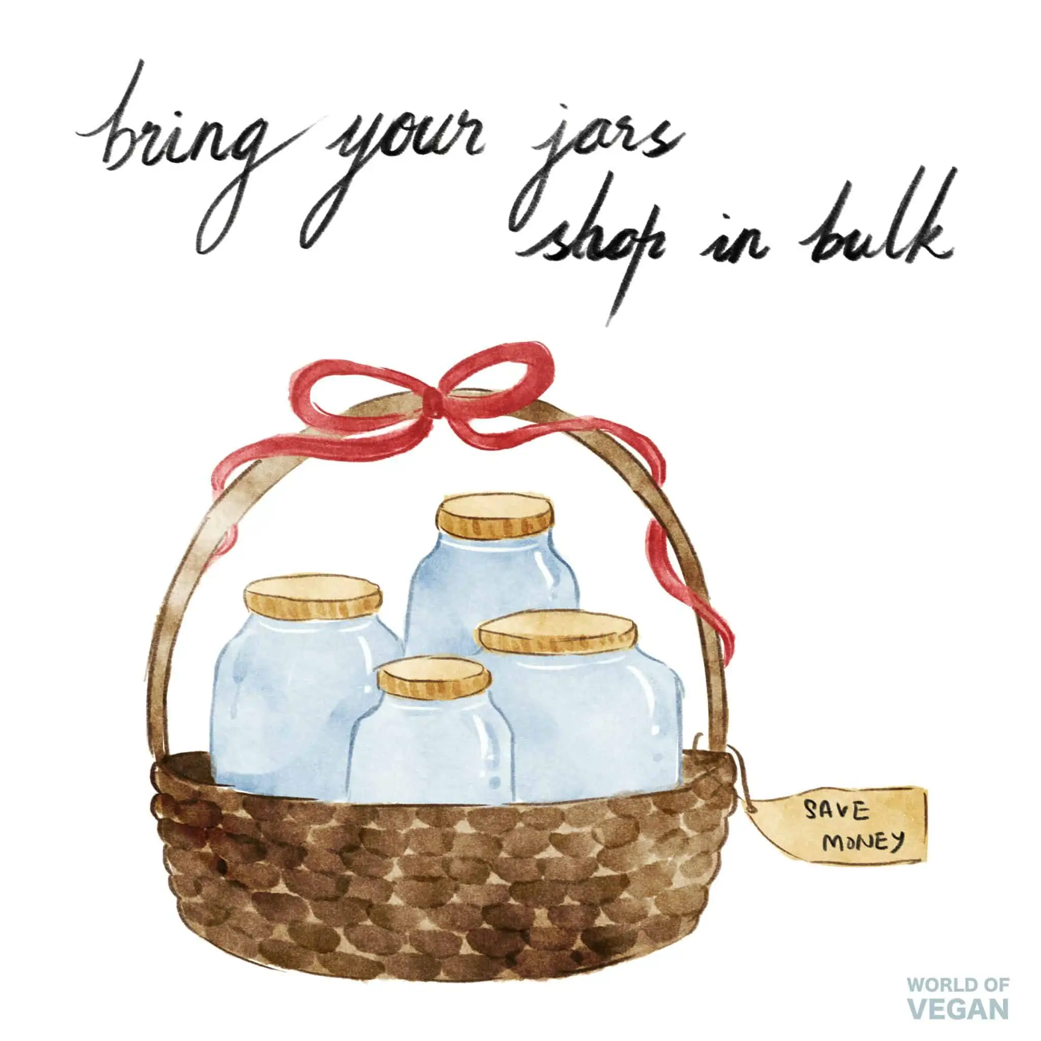 Plus, you’ll also be helping our planet by reducing plastic waste when you bring your own reusable shopping bags! And when you get home, you can store your bulk items in glass mason jars that last a lifetime (I recommend these wide-mouth quart-sized mason jars because you can fit your hand in them so they are super-easy to clean).