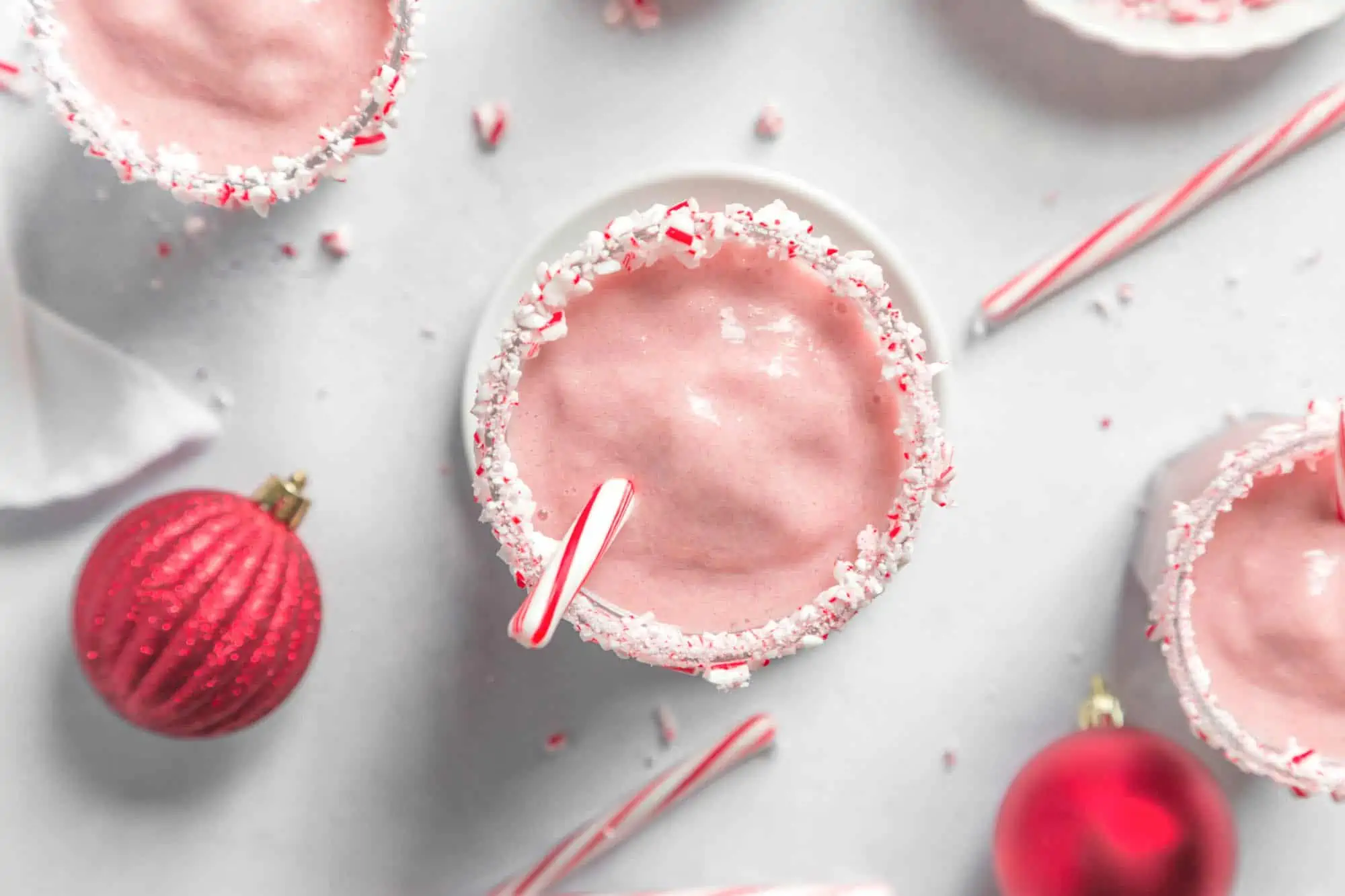 Because candy canes are just a mixture of sugar, corn syrup, peppermint flavoring, and red food coloring, there’s not much about them that is healthy. The smoothie tastes amazing without the candy cane additions, but they are fun if you want to include them. Candy canes are generally vegan-friendly (if they don’t use crushed beetles for the red dye), but here are brands that are safe to use: Spangler, Jolly Rancher, Brach’s, Jelly-Belly, and Sweet-Tart.