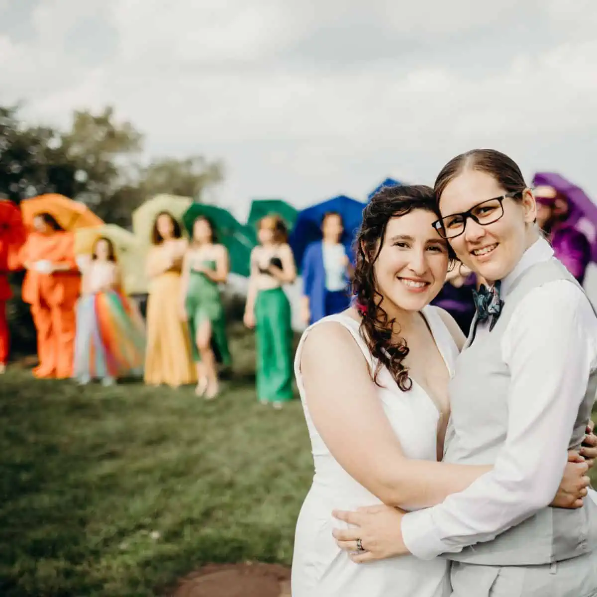 Looking for rainbow wedding ideas and inspiration? This joy-filled celebration is packed with vibrant details, plant-based food, and heartfelt intention. Meet Lizzy and Tiffany, whose wedding was magic from the very first moment—glowing from the inside out. Playful, powerful, and rooted in who they are, their celebration was built on every kind of love: queer love, chosen family love, vegan love, and self-love. It was a day full of color, comfort food, and radical joy—a reminder that weddings can reflect our deepest values without losing a hint of sparkle.