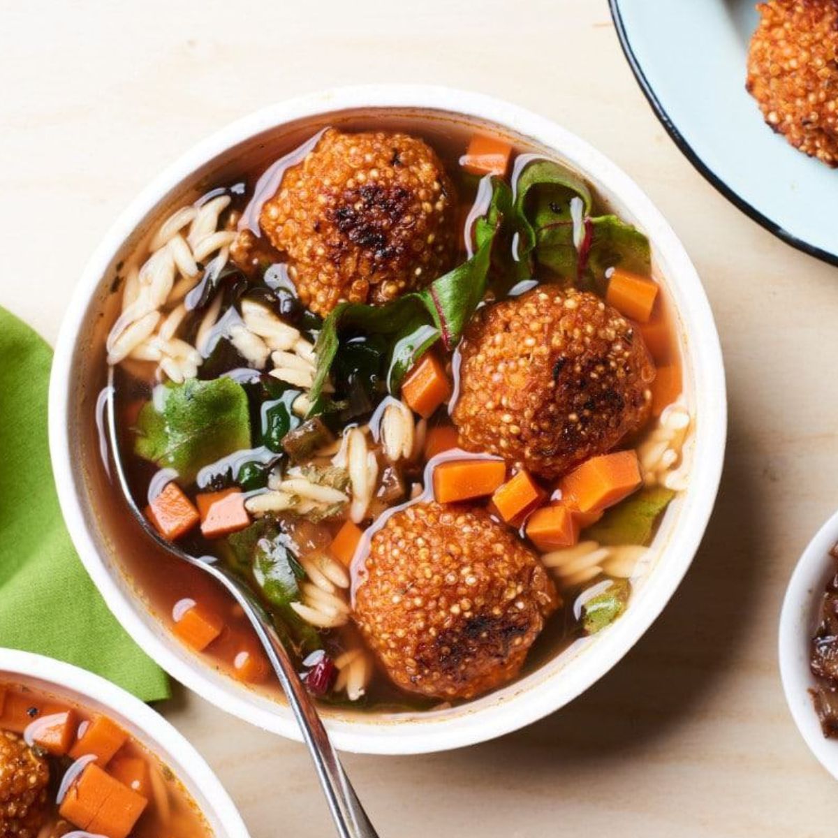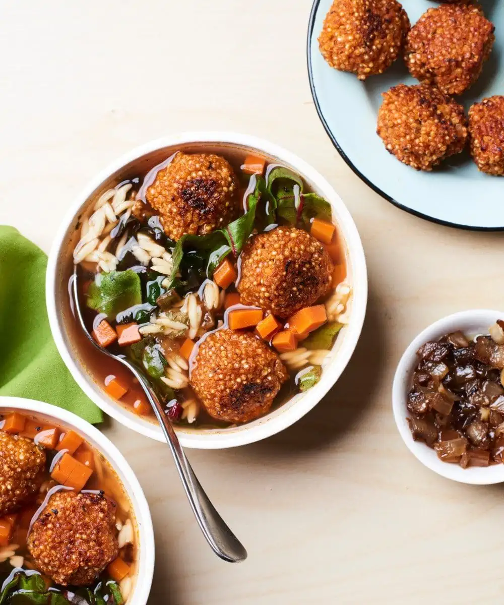 • Double the Recipe: To batch cook, simply double or triple the ingredient quantities. Prepare a large pot of soup, and bake extra quinoa meatballs.