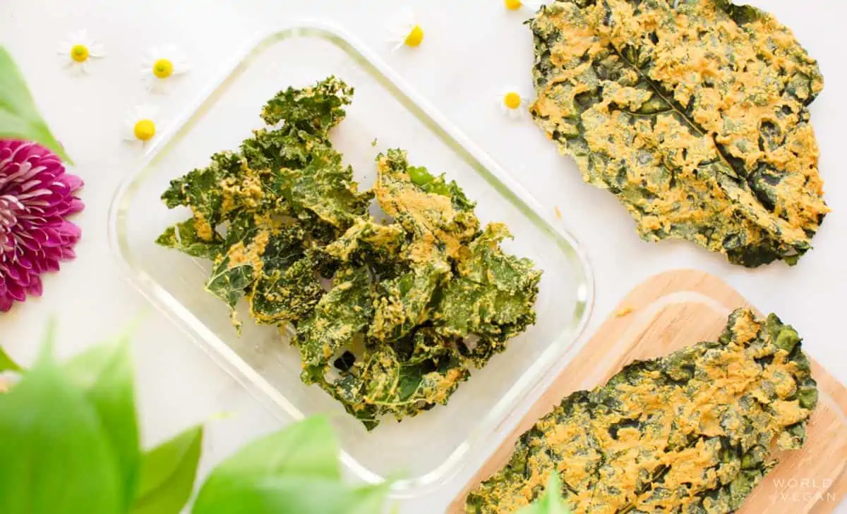 cheezy vegan kale chips with nutritional yeast