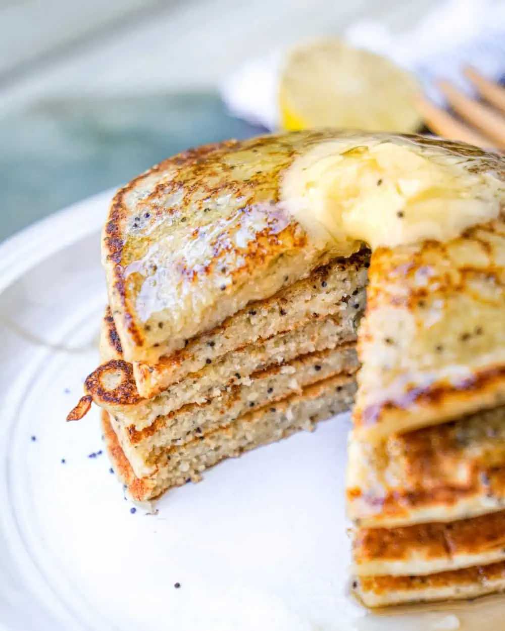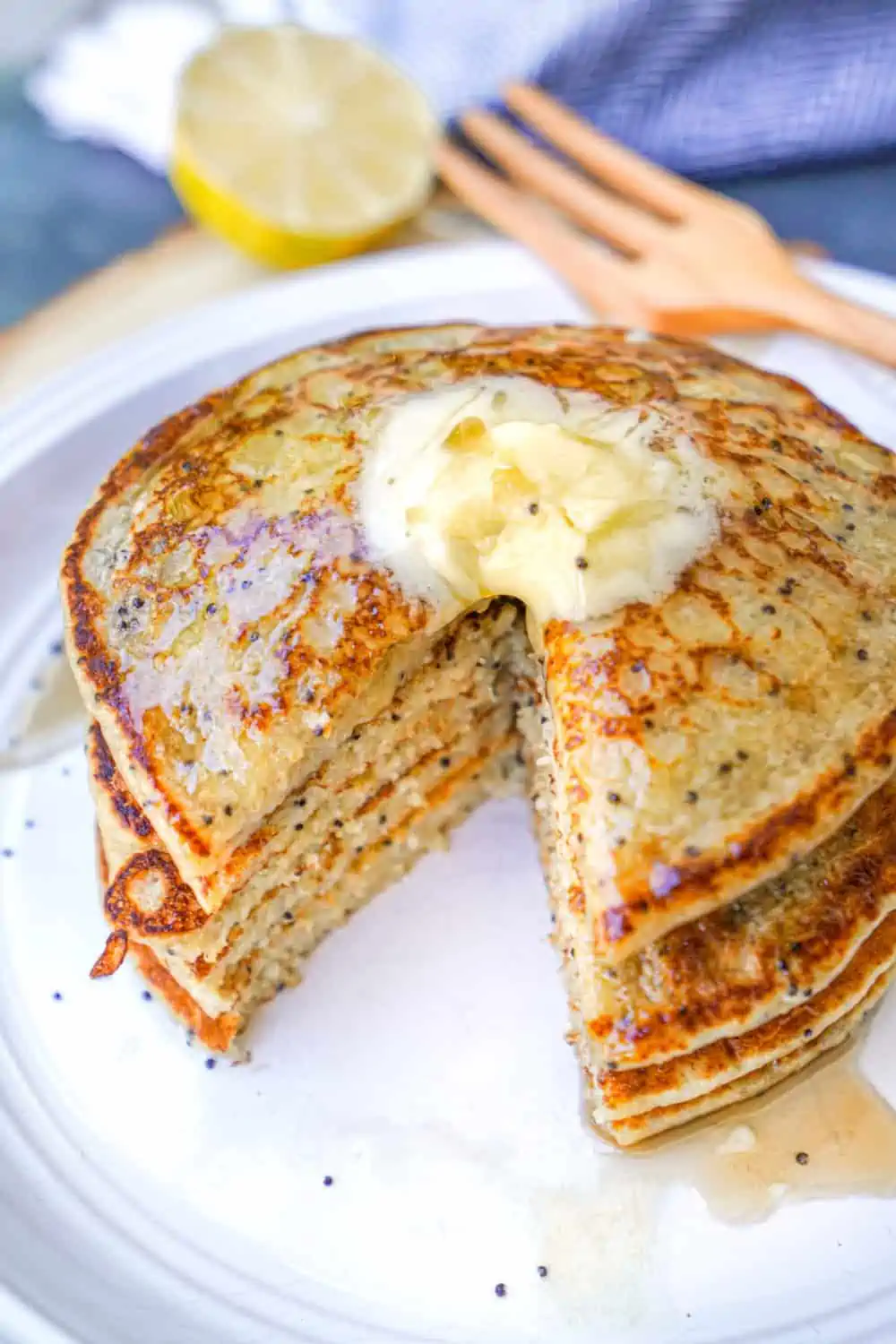 Any leftover vegan lemon poppyseed pancakes can be refrigerated for a few days or frozen for up to a month. If you have time, consider making a batch that you can freeze for future use. When you’re ready, either thaw overnight in the fridge or defrost in the microwave.