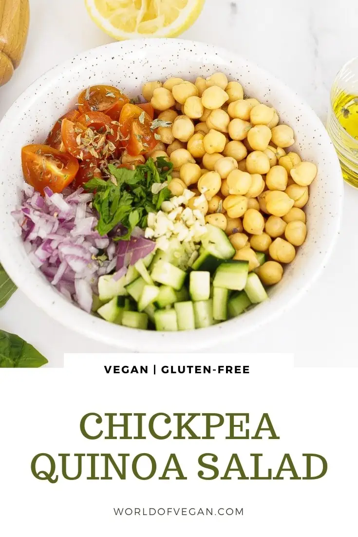 Fresh Chickpea Quinoa Salad recipe by Michelle Cehn, copyright of World of Vegan™. Article written by Gina House and edited by Amanda Meth. Please note that this article may contain affiliate links which supports our work at World of Vegan.