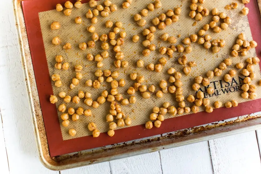 • Make sure to turn the chickpeas halfway through baking so that you don’t have overdone and underdone sides.