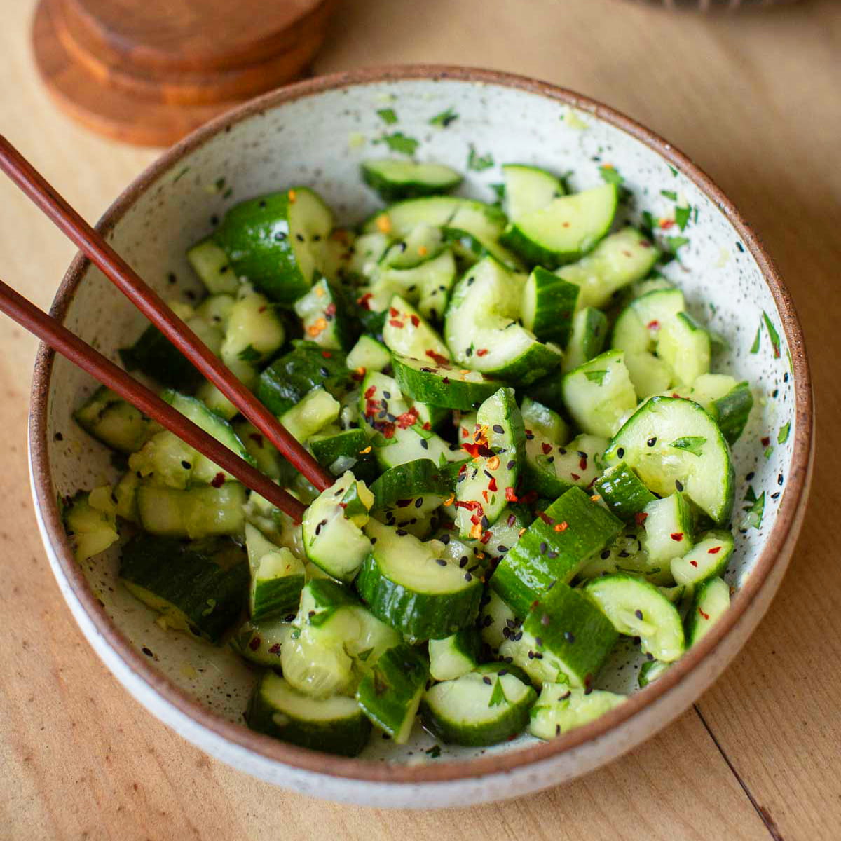 We love this salad because it’s so easy to whip and adds a punch of flavor to any meal. It complements just about everything—serve it alongside stir-fried veggies, noodle bowls, or as a part of an Asian-inspired dinner spread. Plus, the smashing technique makes it fun to prepare and also helps soak up all the delicious dressing.