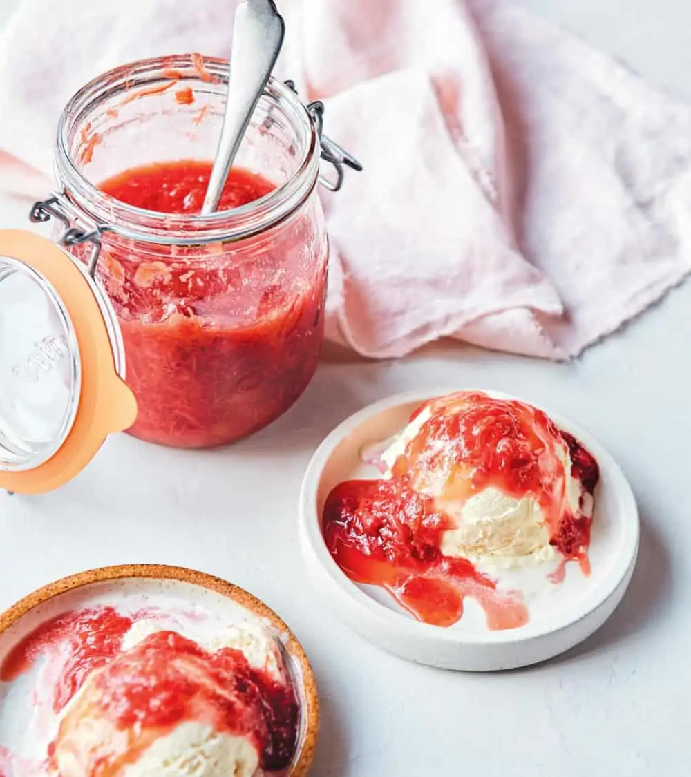It’s in season from spring to late summer but the beauty of compote and jam is that the sugar content can preserve it for long periods of time. Of course, you can also freeze the stems and use it when rhubarb is out of season and no longer available in stores.
