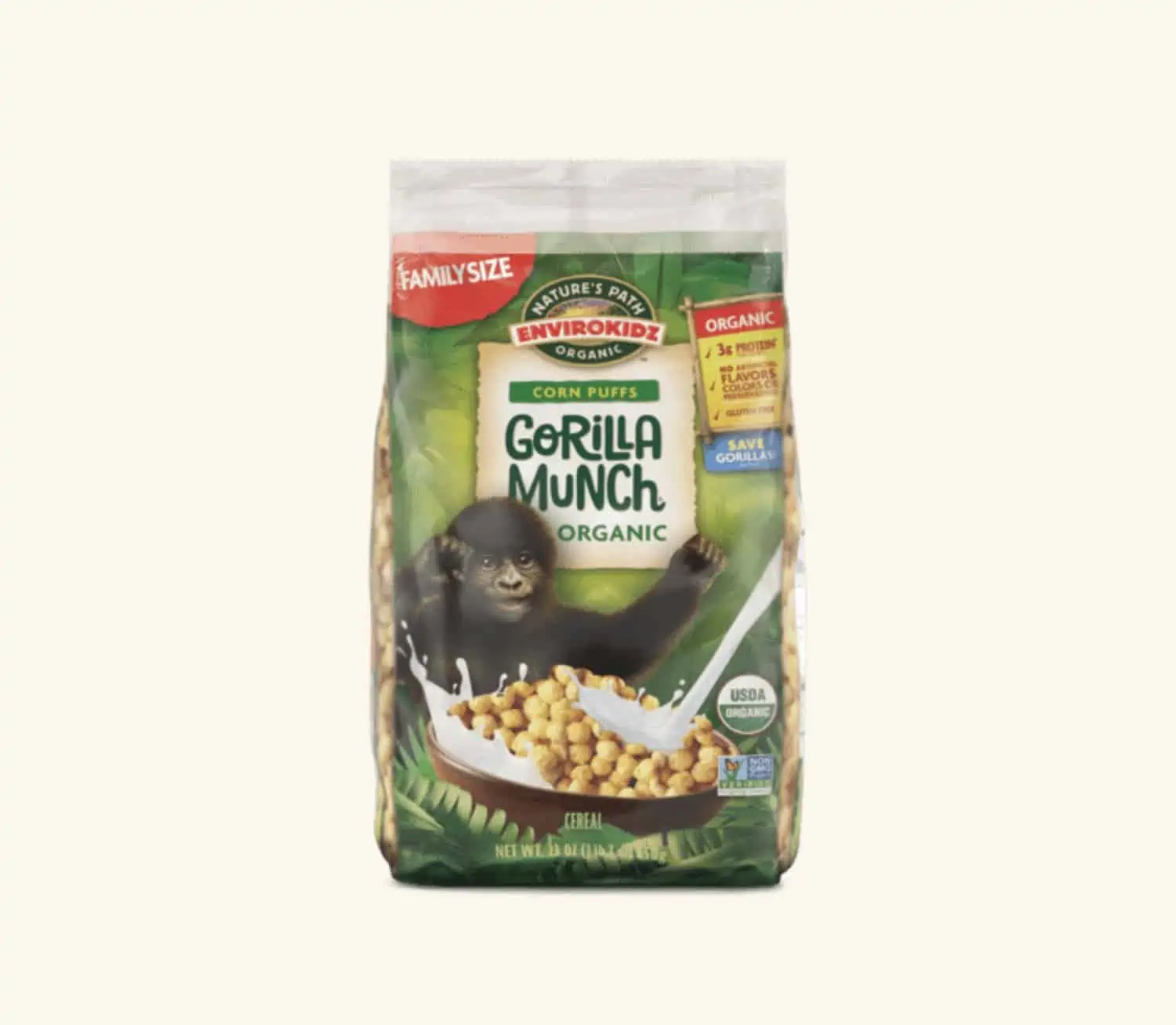 You can choose between: Organic Morning O’s, Corn Flakes, Raisin Bran, Wheat Waffle Cereal, or Wheat Squares.