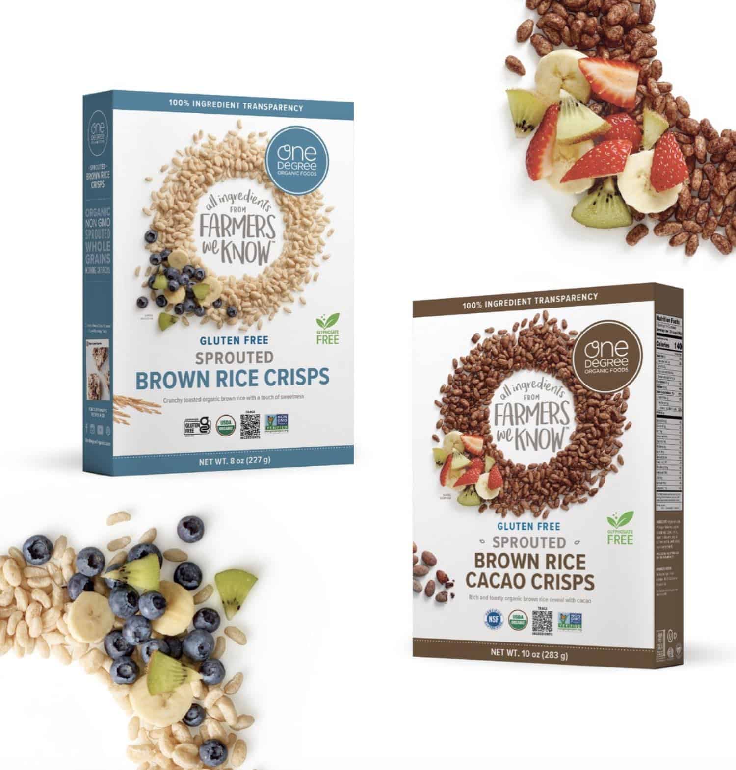 One Degree’s vegan cereal options include: Sprouted Maize Flakes, Brown Rice Cacao Crisps, Sprouted Oat O’s.