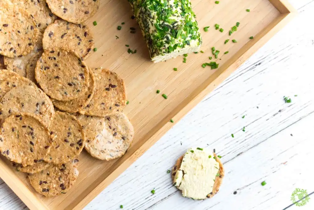 One of my favorite foods in the fall, especially around Thanksgiving time, is the cheese log! Until I saw this vegan recipe, I thought I’d have to give this up for good. I’ve tried other recipes and they just never came out right. This one is excellent and the flavor is great! It spreads so easily on crackers and is really quick to make. Love it!