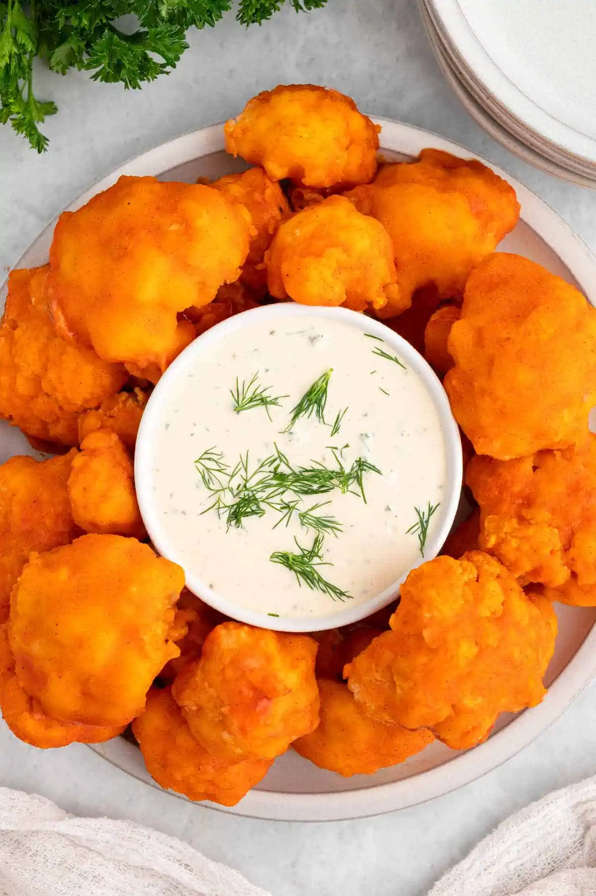 Gluten and soy-free, these delicious vegan buffalo wings are made from crunchy cauliflower! Serve alongside from chopped veggies and vegan ranch dressing and you’ll have the perfect game day spread.
