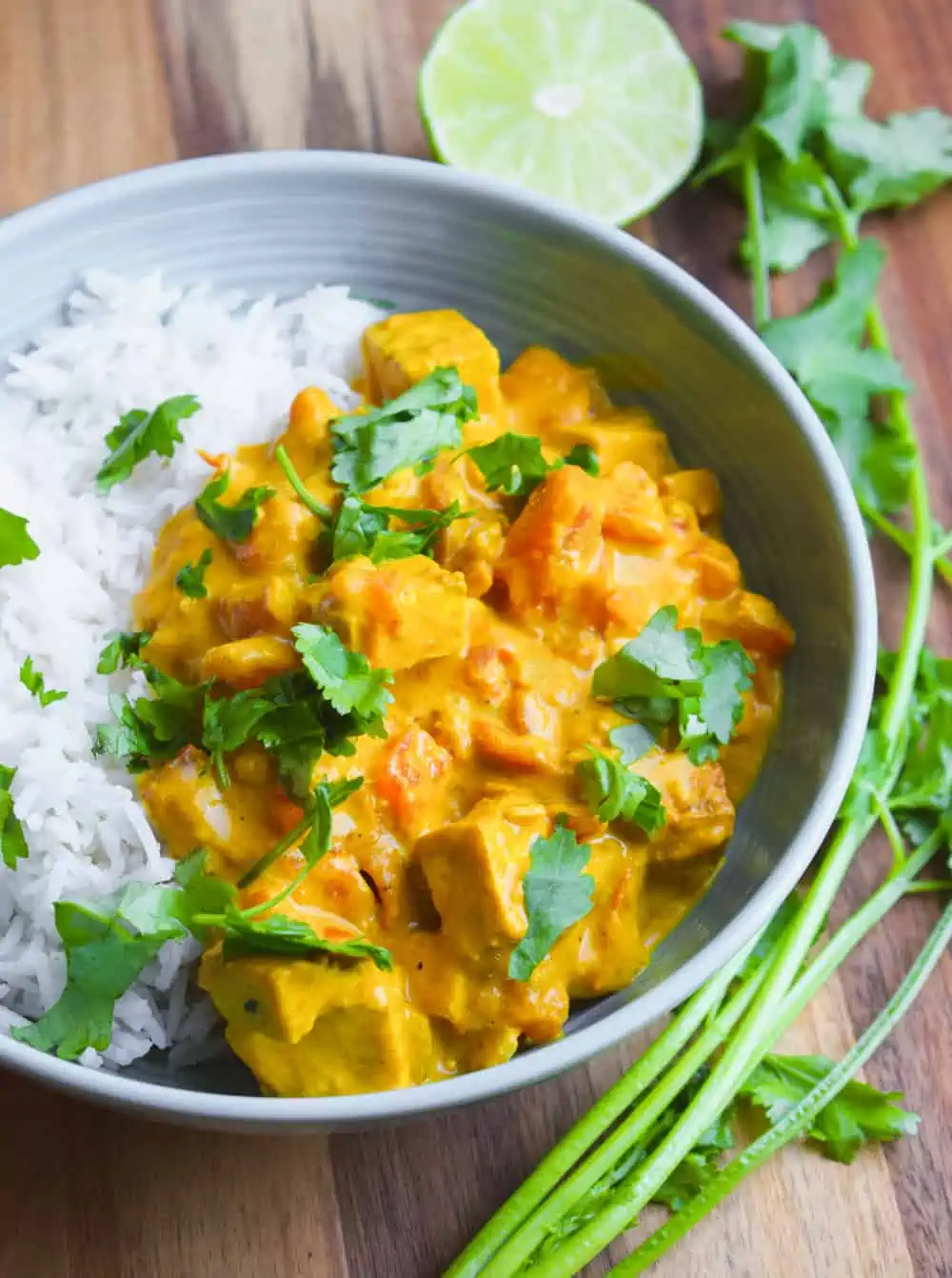 This mouthwatering recipe for vegan butter chicken from will quickly become your new favorite. Featuring cubed extra firm tofu and a variety of flavorful spices, this Indian-inspired dish is truly creamy perfection!