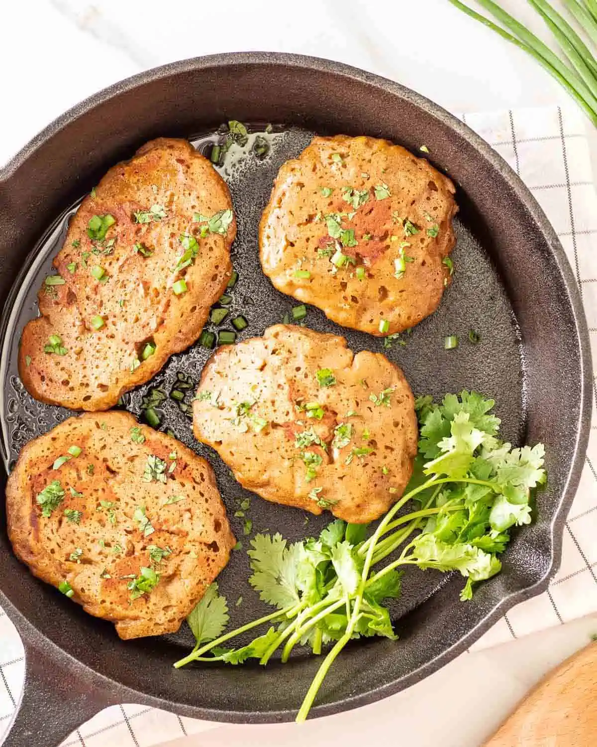 You can make this recipe using any of your favorite vegan chicken nuggets — a store bought version or homemade. Just air fry the, bake them, or deep fry them and pop them over freshly made waffles with some maple syrup and you’ll be in vegan brunch heaven.