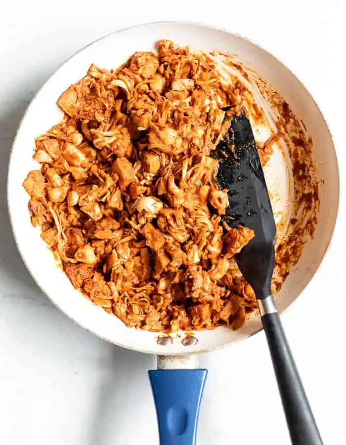 There’s just something so satisfying about this recipe for vegan shredded chicken from heartful table. Made with just five simple ingredients, you’ll fall in love with the crispy texture and umami flavors. Great for enjoying atop a salad, mixed into a stir-fry, or wrapped up with some lavash and colorful veggies.