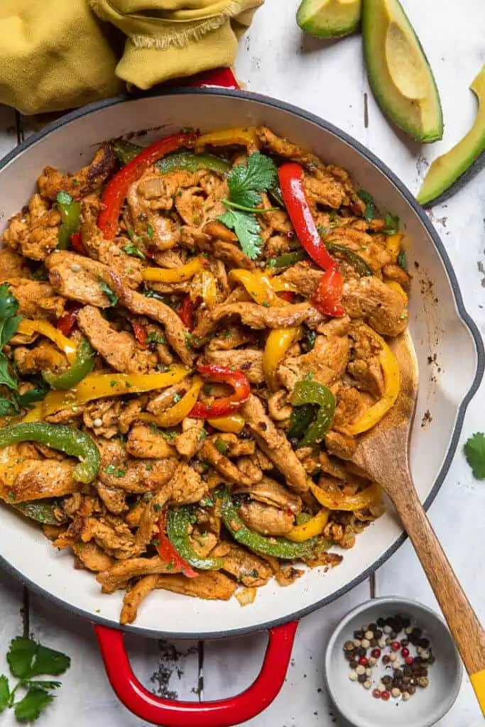 These vegan chicken fajitas from Make It Dairy Free are perfect for a large meal or for prepping for lunch throughout the week! Soy curls are the magic ingredient in this vegan chicken recipe, made even more delicious with the help of onions, peppers, and spices. Get some fresh tortillas, beans, and rice and you’ll be in fajita heaven.
