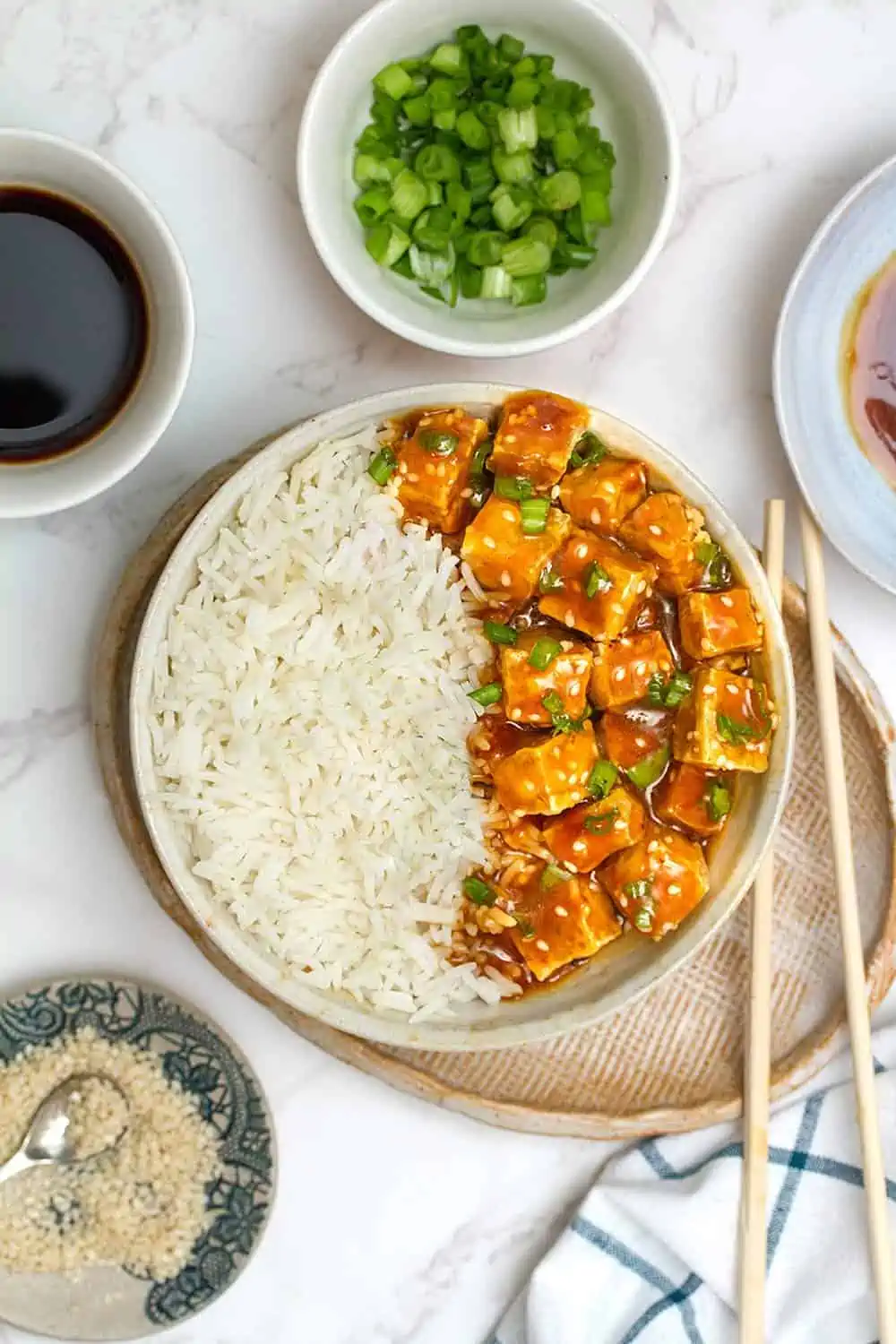 Satisfy your cravings for Chinese takeout with this amazing vegan chicken recipe from Steph Sunshine for General Tso’s tofu. Sweetened and battered to perfection, you’ll be dreaming of this delectable dish for weeks to come!