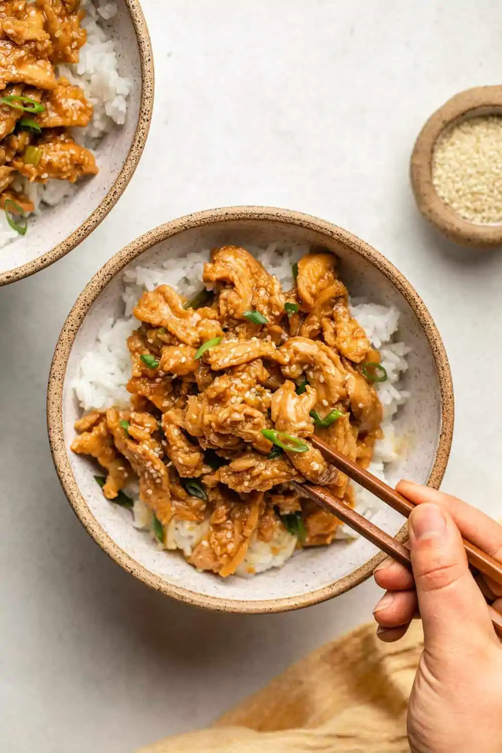 Perfect for a quick midweek meal, this vegan sesame chicken recipe from From My Bowl is totally worth a try! Made from soy curls and a sweet and salty sesame sauce, it comes together in just minutes and goes great with a warm bowl of rice or noodles.