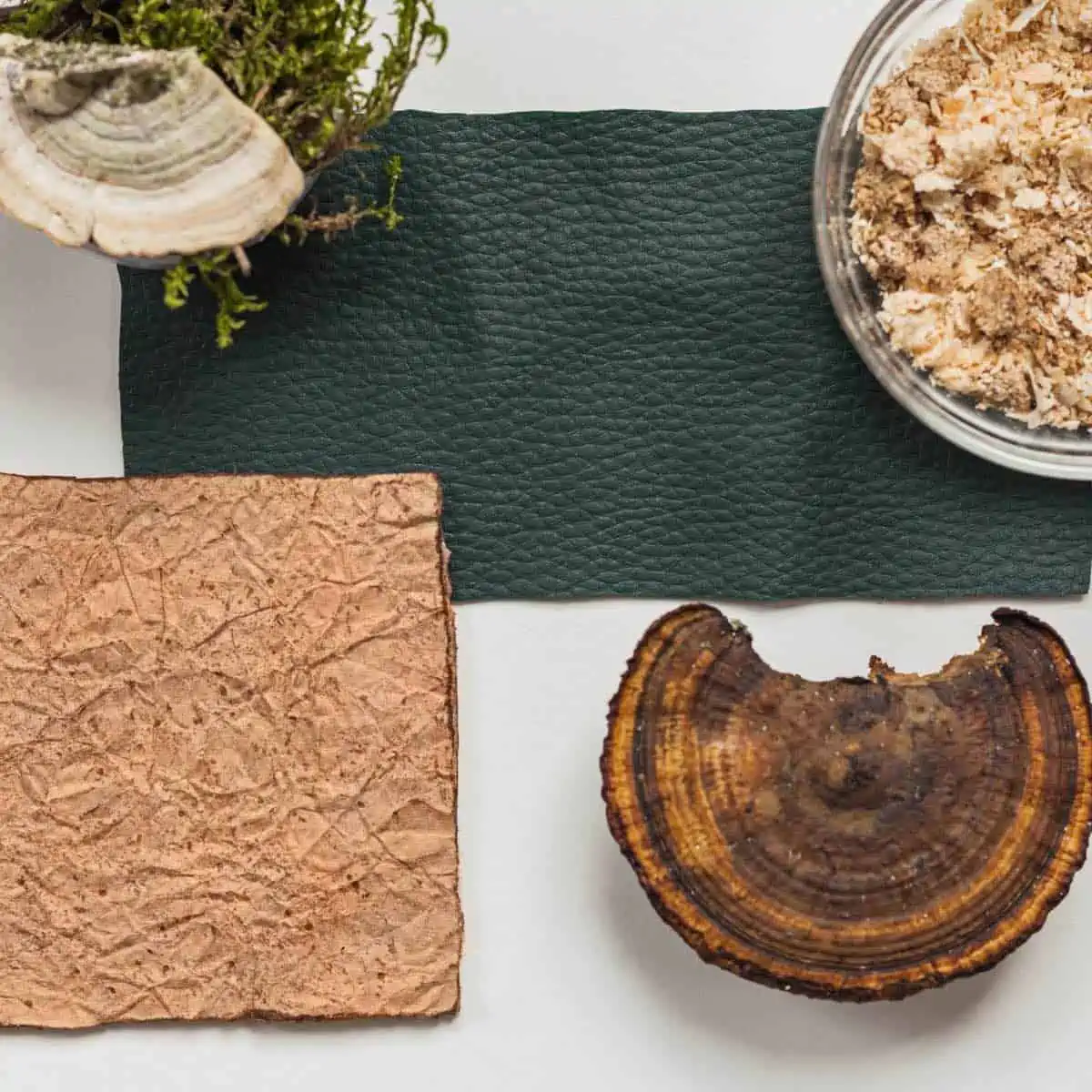Plastic may soon be a thing of the past, as new manufacturing breakthroughs continue to develop. These brilliant new methods use less water, create fewer emissions, and result in more durable, beautiful plant-based products. A few of the most exciting innovative vegan options you may see in stores include: