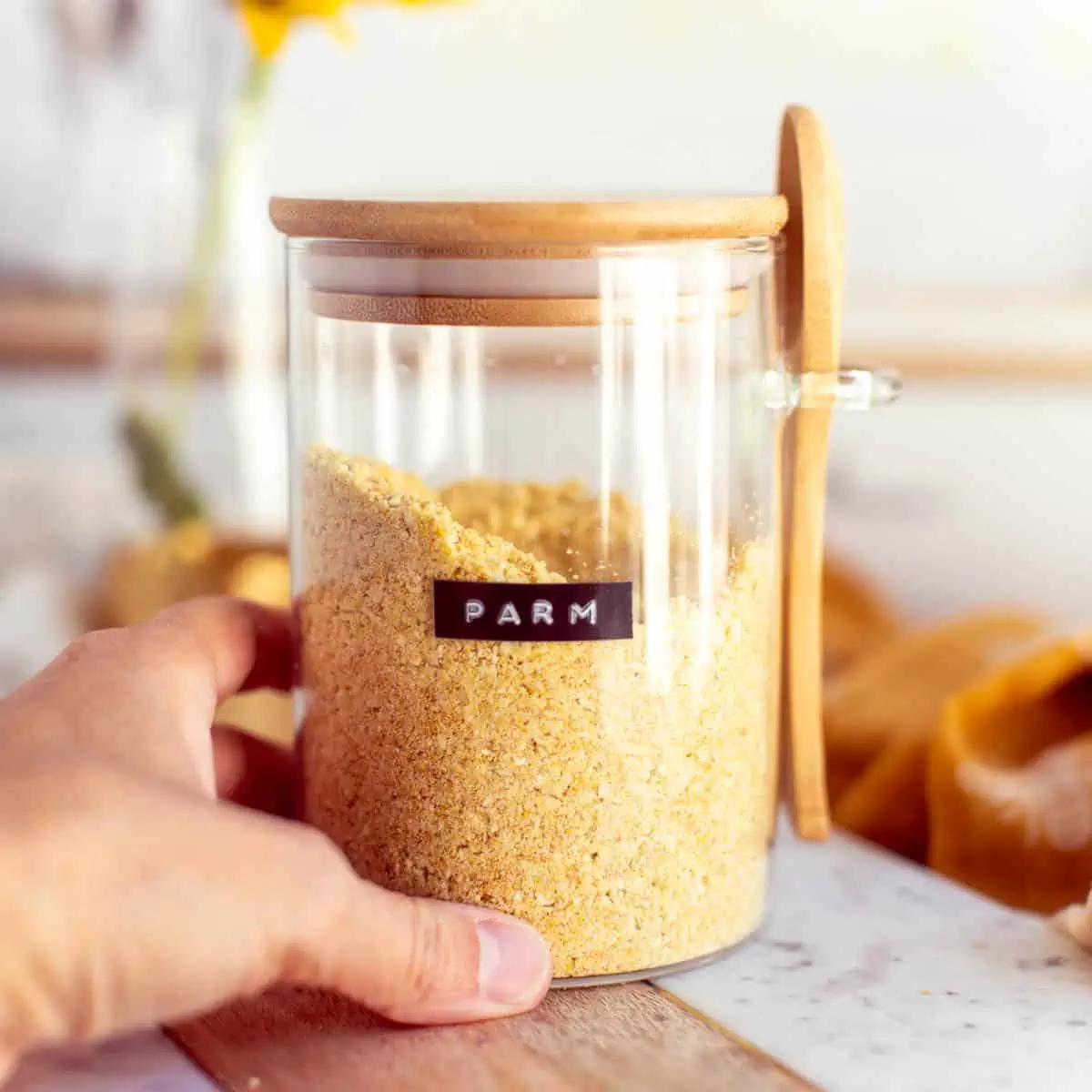 Ok, we know nutritional yeast (or “nooch”) isn’t technically parmsean, but we’re putting it on the list for good reason. It’s a great source of plant-based protein and vitamin B12, and a great choice for those looking for a health-conscious version of vegan parm. Sprinkle this on popcorn, tofu scrambles, roasted veggies, and more.