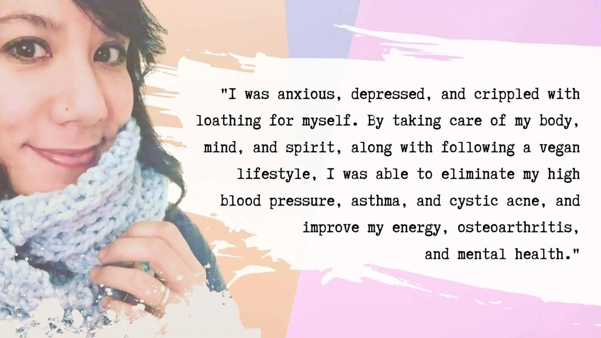 • I suffered from high blood pressure, asthma, persistent allergies, osteoarthritis, weekly migraines (since age 11), painful cystic acne, and a lack of energy and motivation.