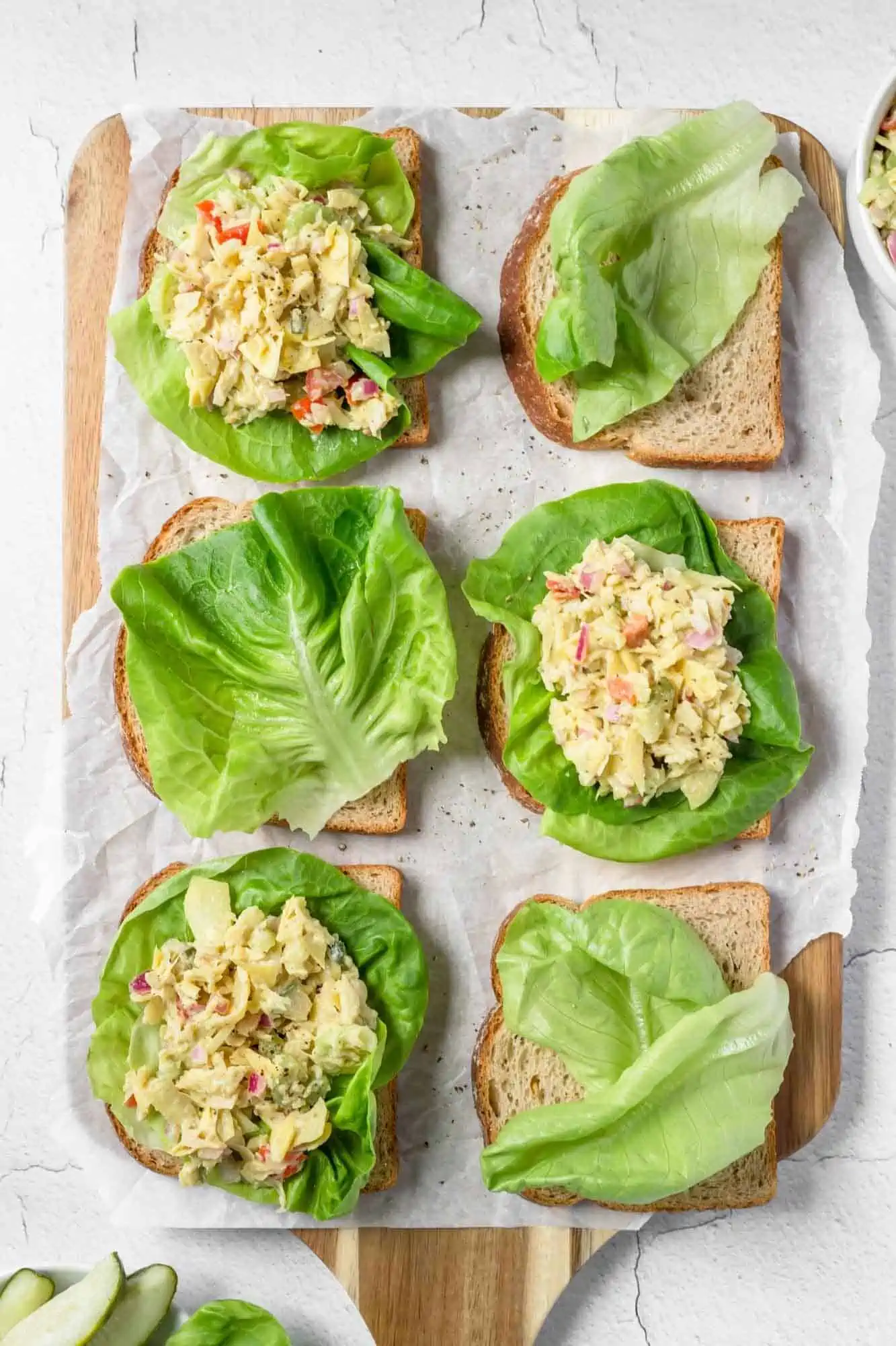 Had enough chickpea tuna? Create an even more creative veggie wrap with marinated artichoke heart tuna salad! It’s absolutely delicious and again works well for almost any vegan lunch meal you can dream up. A wrap, sandwich, open-faced sandwich, and beyond.