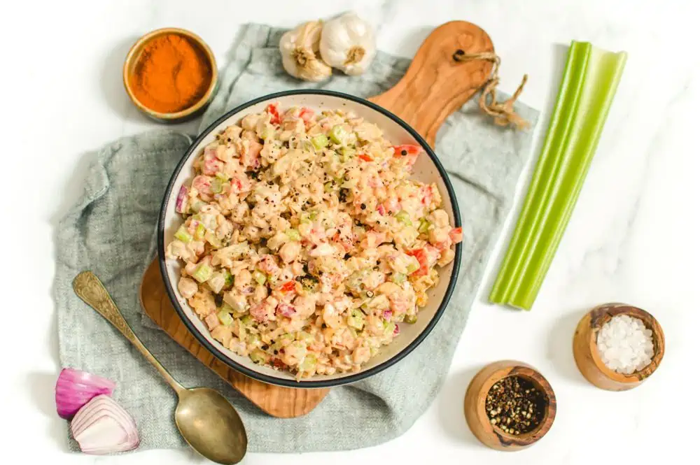 Chickpea tuna salad is so versatile. It can be used on sandwiches, in wraps, in lettuce ups, or eaten as a lunchtime side dish. It’s easy to make and can be stored in the fridge for days on end, so it’s perfect for meal prep.