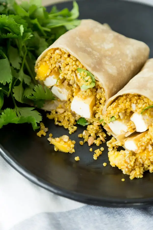 If you love maximizing both protein content and flavor in your wraps, then you’ve got to try these curry quinoa tofu wraps from Veganosity! Filling and easy to make, you just need about 20 minutes before you’re on your way to a delicious vegan lunch to enjoy throughout the week. Gluten-free? Use your favorite gluten-free wrap or even lettuce!